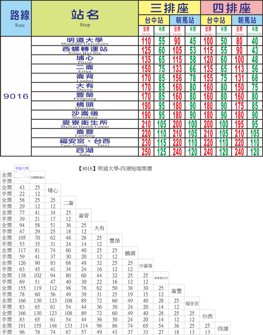 9016線4/1起調整票價如下: