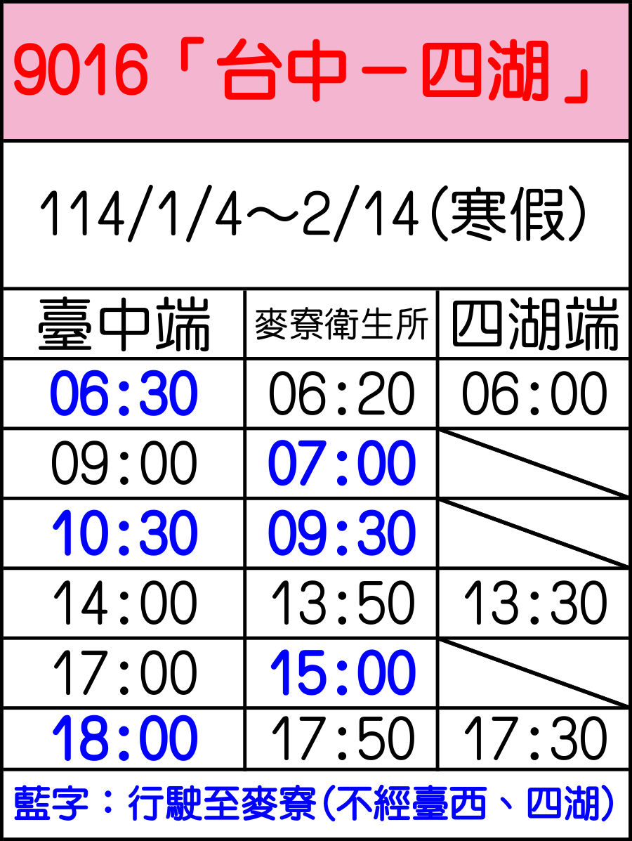 9016線114/1/4-114/2/14寒假班次