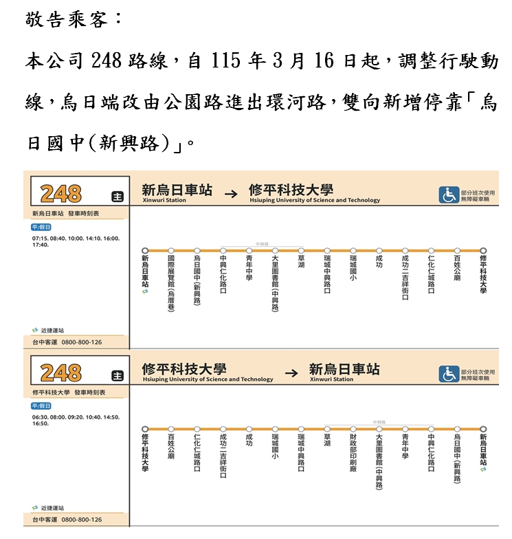 台中客運服務專線:0800-800-126